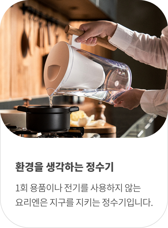 요리엔 필터 하나로 생수병 125개의 사용을 줄일 수 있습니다.