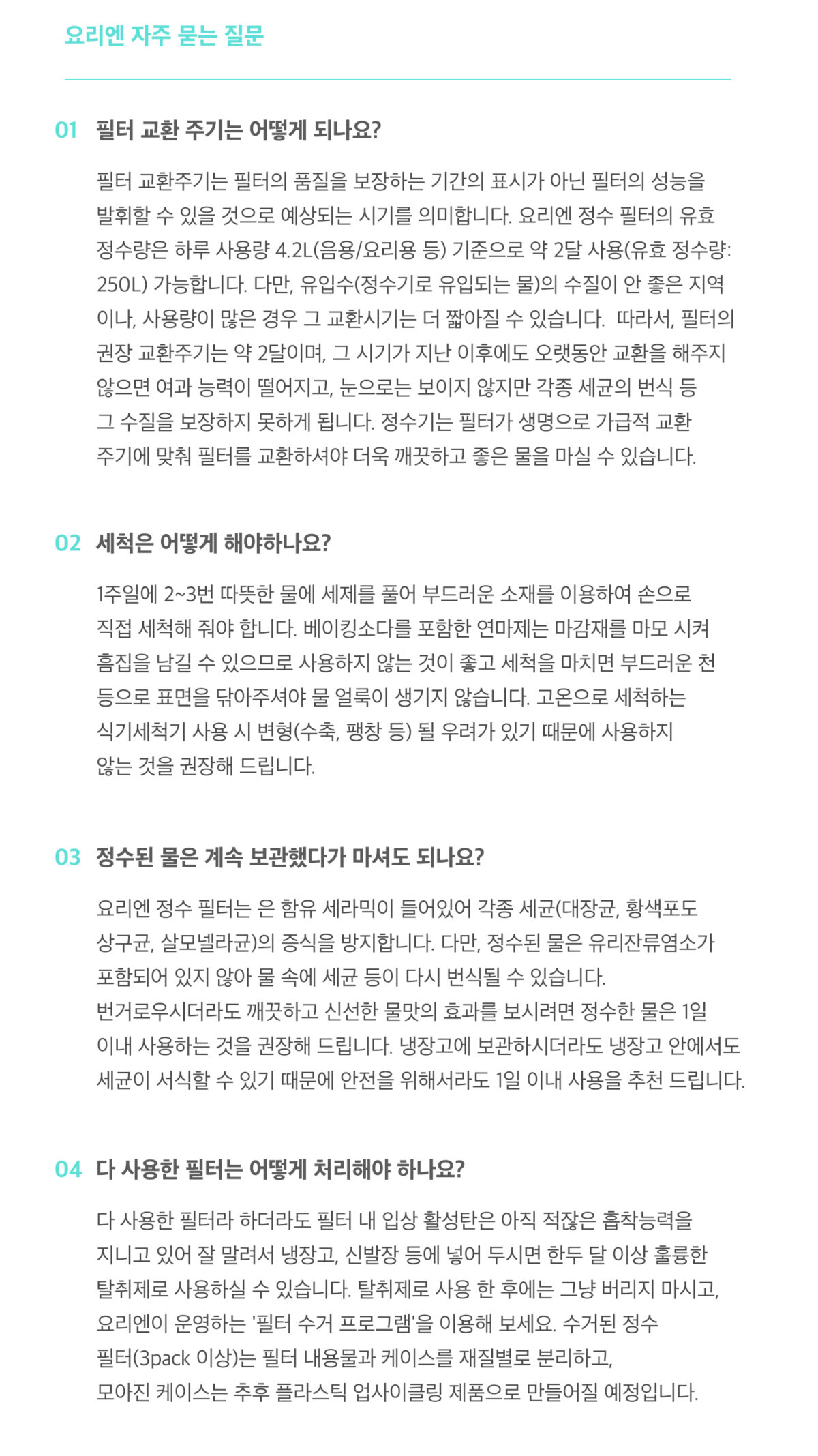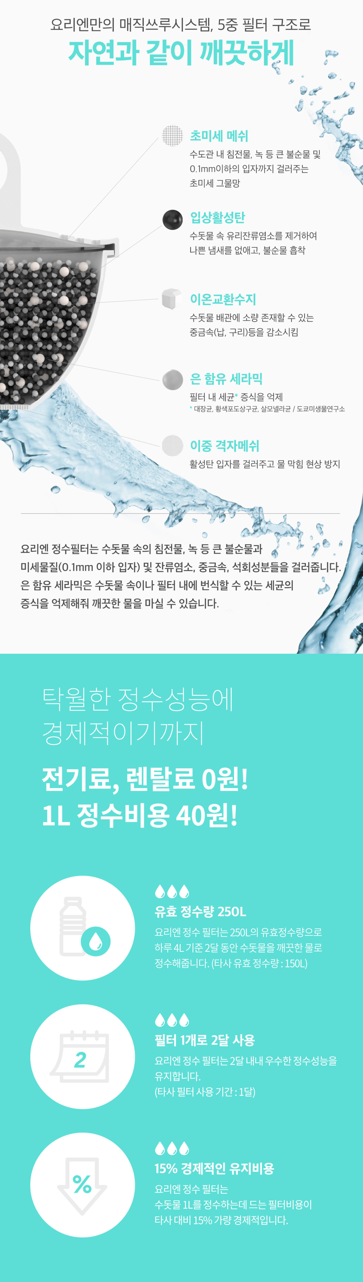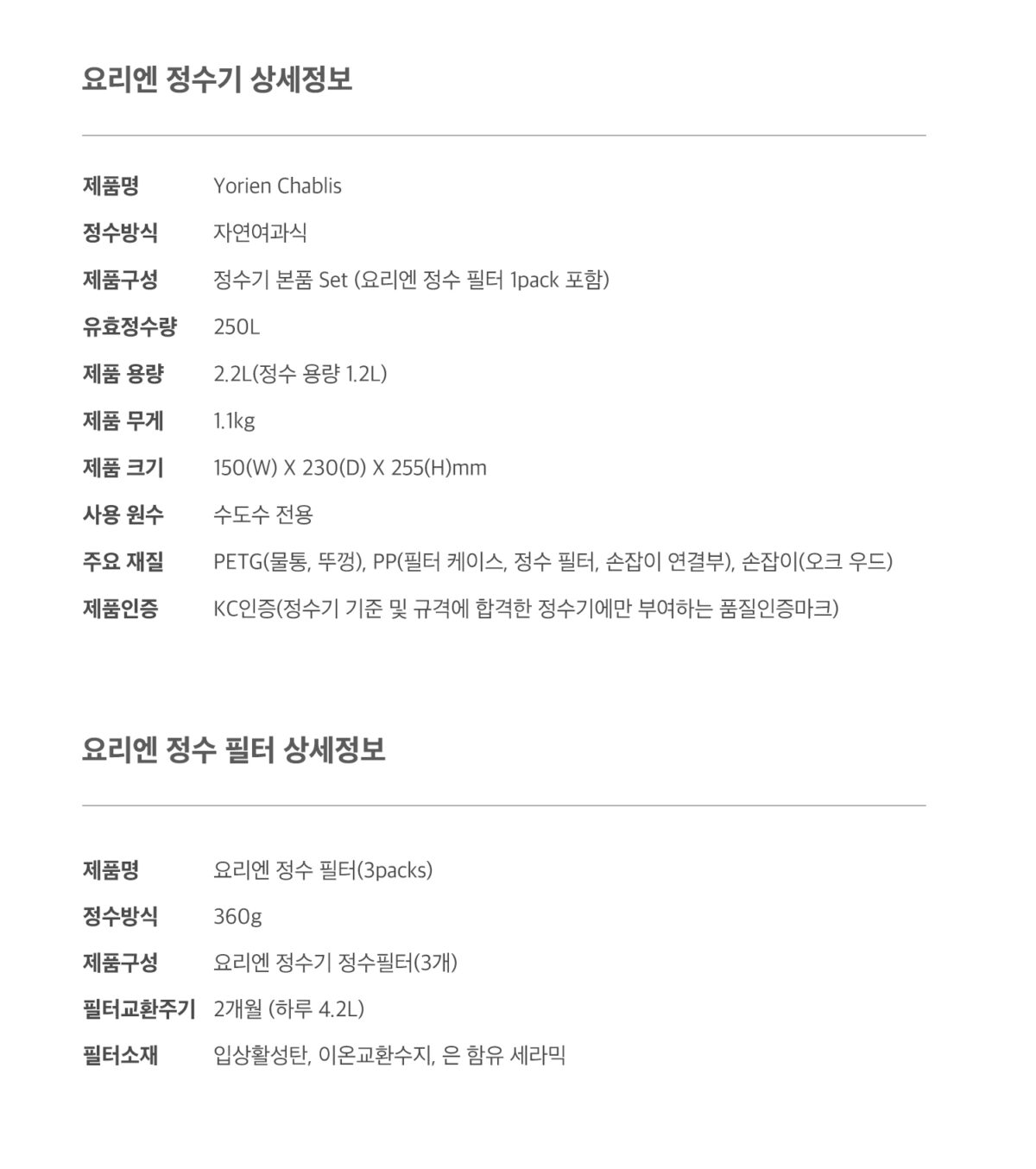 | 제품구성 | 정수기 본품 Set (요리엔 정수 필터 1pack 포함) |